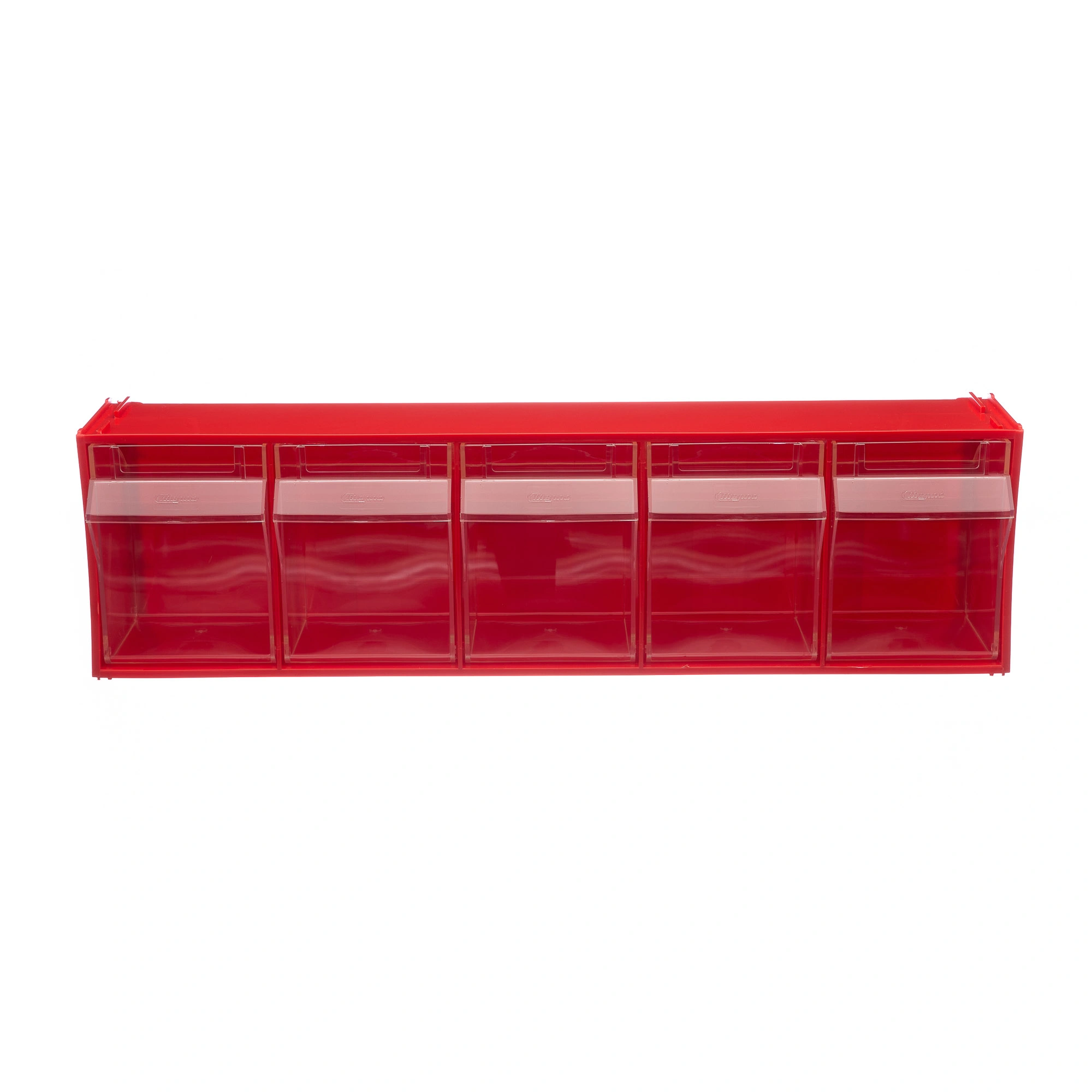Короб откидной Стелла-техник F-600-5 (600х140х168мм.) 5 ячеек, красный, прозрачный служит для хранения мелкоштучных предметов. Данная система хранения не подвержена случайному опрокидыванию. Откидные стандартные ячейки обеспечивают быстрый доступ к необходимым предметам. В случае необходимости полного высыпания или наполнения внутренние ячейки легко извлекаются. Полезный внутренний размер каждой ячейки 108х98х107мм. Специальный пластик, из которого выполнен короб, выдерживает значительные нагрузки и обладает оптимальной эластичностью. На основе данных коробов можно сформировать многоярусную систему хранения вертикально, в том числе и с коробами других размеров, таких как F-600-9, F-600-6 и F-600-4 по принципу пирамиды. Использование в качестве дополнительного элемента специальных металлических рам, позволяет комплекту коробов нести большие нагрузки в напольном, настольном и настенном варианте. Короб данной модели легко можно прикрепить к стене или установить на специальные кронштейны (Артикул: Кронштейны-FOX-750). Обзорность содержимого сквозь прозрачные внутренние ячейки, наличие отсека для информационных бирок, легкое извлечение внутреннего короба для опустошения и наполнения, все это является неоспоримым преимуществом откидных коробов серии F. Температура эксплуатации от -10 до +70С.