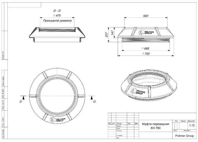 Муфта переходная КН 780 предназначена для пластиковых колодцев серии КН 780 / КН 780М, а также для колодца КС 5 с горловиной 780 мм.