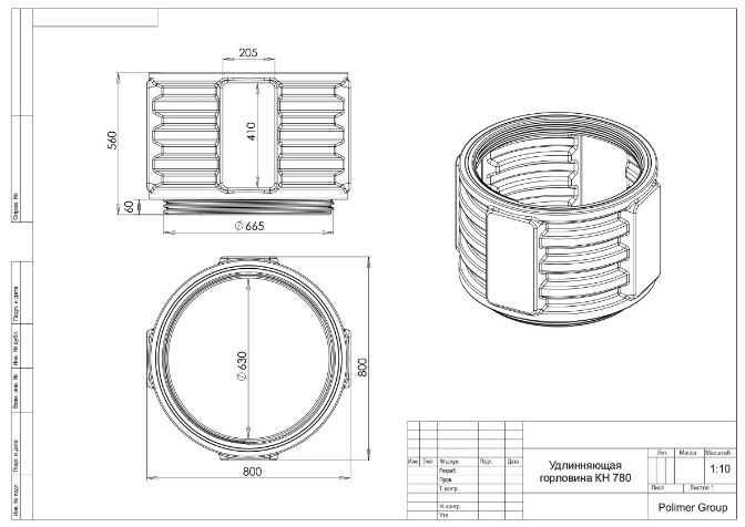 Элемент колодца КН-780, позволяет увеличить высоту колодца на 500 мм. Устанавливается на основание колодца с помощью резьбового соединения.
